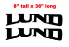 PAIR of 8" X 36" LUND BOAT Hull Decals uv safe Lifetime warranty